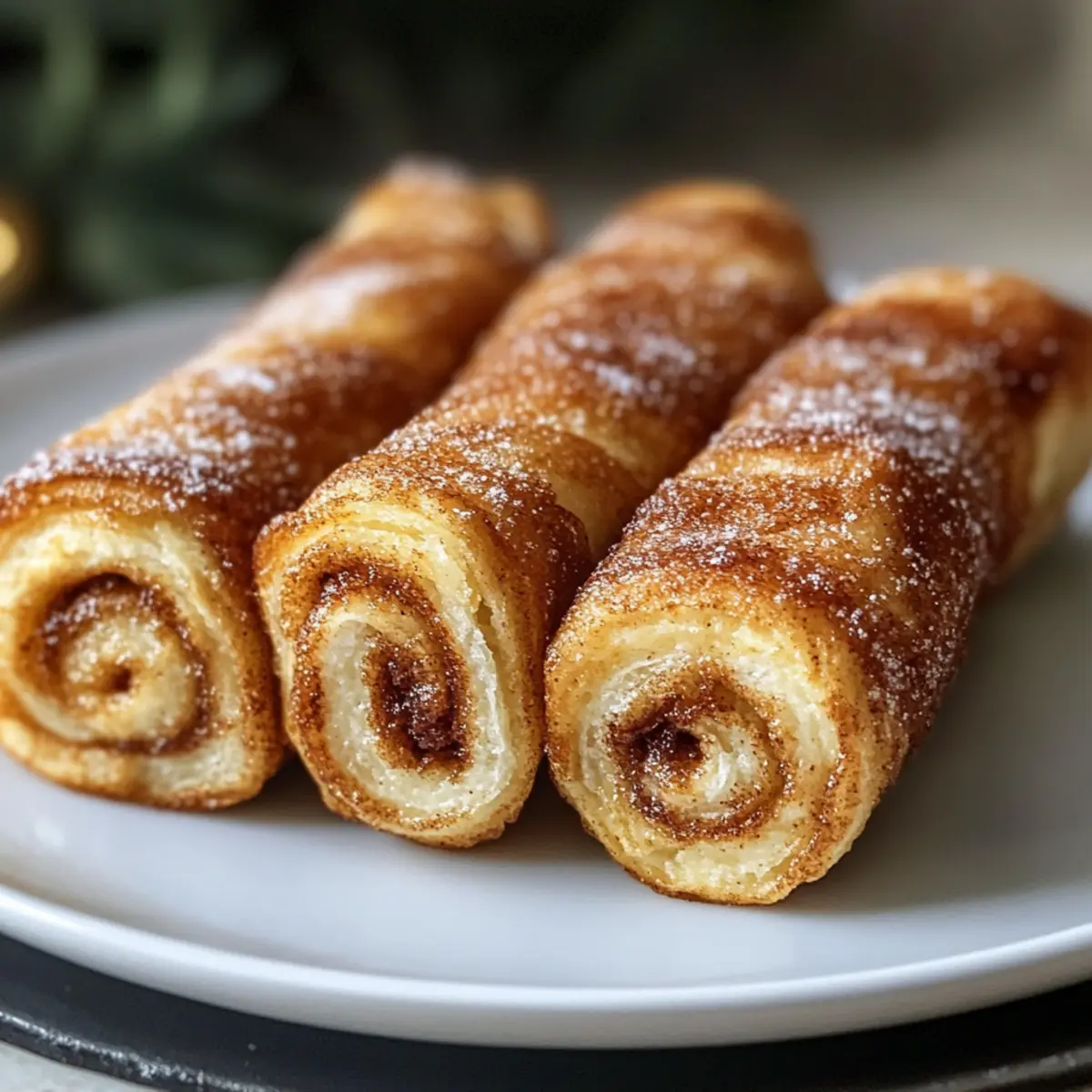 - Nehme die Roll-Ups aus der Pfanne, lasse sie abtropfen und bestreue sie mit Puderzucker. Serviere sie warm.