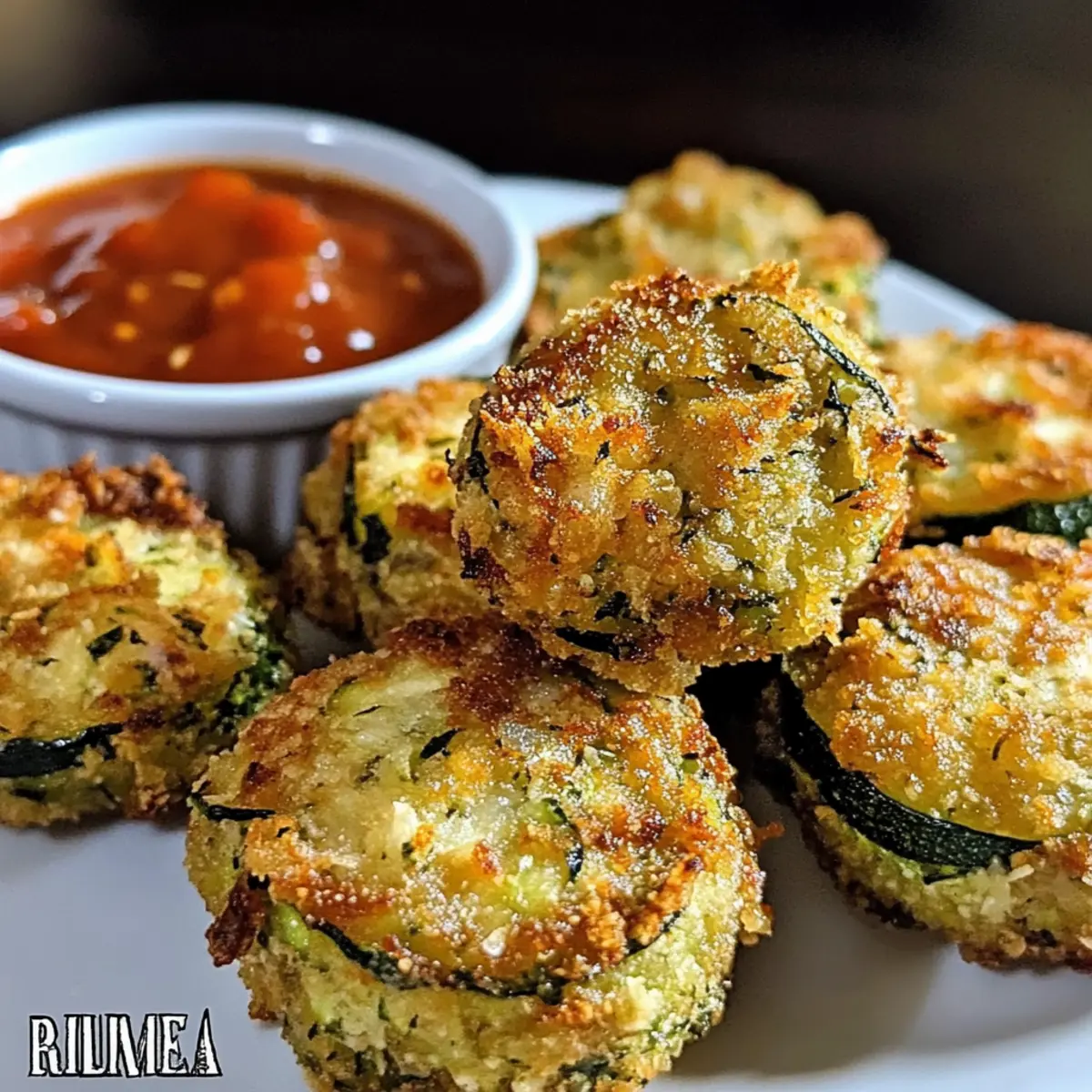 Nimm die Krossen Zucchini Knoblauch Bissen aus dem Ofen und lasse sie kurz abkühlen. Serviere sie warm mit einer köstlichen Tomatensauce zum Dippen, damit jeder Biss in einen Geschmackstraum eintauchen kann.